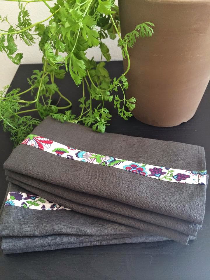 | My lovely new set of linen napkins with Liberty print trim. £28 for 6. Raglan Road Designs |